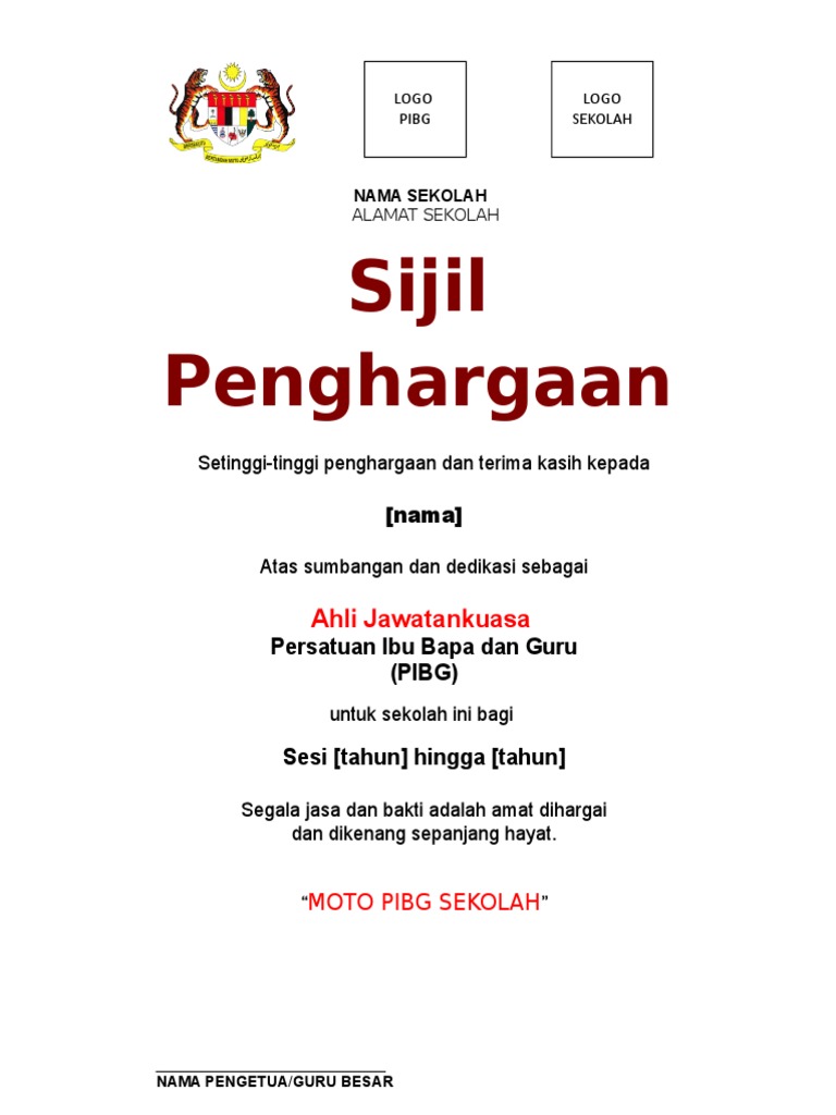 Contoh Sijil Penghargaan Pibg Pdf